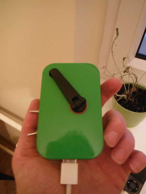Opté por el dínamo de alambre directamente en el convertidor porque pone hacia fuera un voltaje relativamente bajo (no lo suficiente para cargar las baterías internas directamente mediante el cargador LiPo), así que cuando usted la manivela con un dispositivo enganchado hasta la salida del convertidor boost, carga directamente.