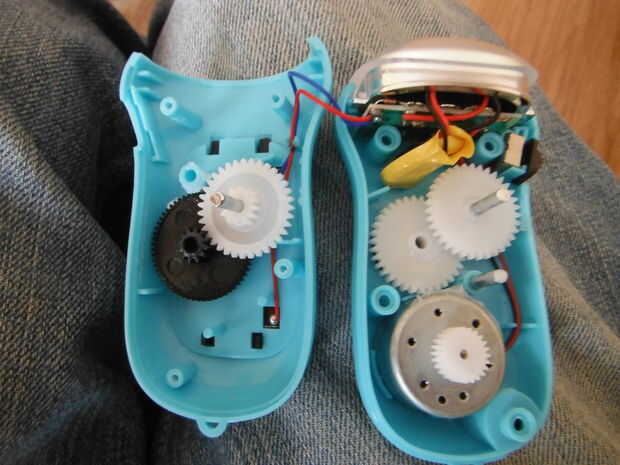 Tomó un poco de ensayo error averiguar donde montar el motor dinamo y donde montar los engranajes de manivela hasta las dos de la mano malla perfectamente cuando se cerró la lata. Terminé de montar el motor real en el interior de la parte superior de la lata y la manivela compensada ligeramente de él en la parte inferior de la lata. Sólo salió que era la mejor manera para conseguir los engranajes de acoplamiento correctamente.