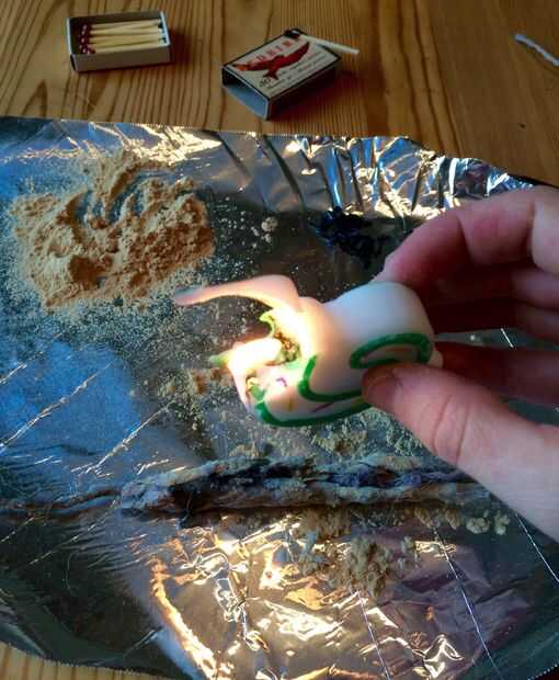 Aplastar el molde y la cera derretida para que se asemeja a una vela.