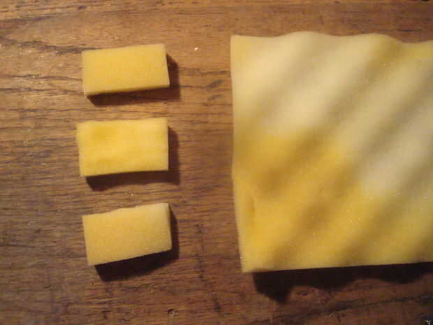 Corte pequeños bloques de la espuma del colchón (o cualquier otra espuma que tenga) para caber cómodamente en cada compartimento.  Tuve que recortar las colinas para hacer una superficie plana.  Mantenga en mente probablemente será ligeramente diferentes en tamaño (yo solo comentar la colocación del stick).  Esto evitará que tus trastos y prolijo incluso si caes en la corriente!
