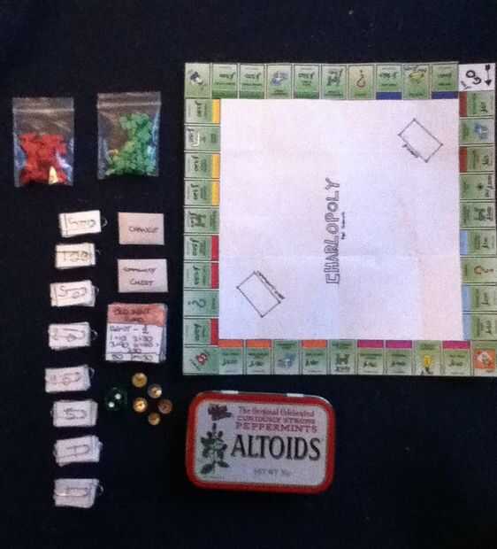 Recorte las tarjetas de tamaño mismo como hiciste con los rectángulos en el tablero y utilizar los reales, escriba lo mejor que puedas en los pequeños. Recuerde escribir "CHANCE" y "COMMUNITY CHEST" en la espalda como que hacerlos.