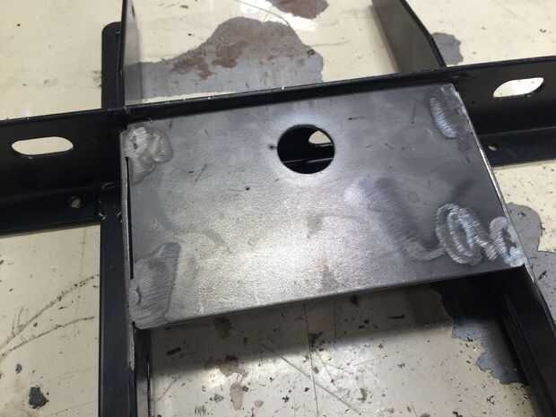 Hacer una placa para cable conectar al escritorio marco. Usé 1/8" acero chatarra que tenía puesta alrededor.