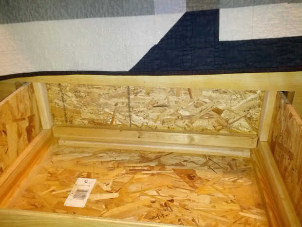 Una vez que el fondo tiene el 2 x 4 RIP jodidos por todos 3 lados (haremos todo el frente del cajón más adelante), uno de los lados del cuerpo y mantener en su lugar. Ejecute el lápiz en la parte superior del corte, marca el tablero de madera aglomerada. Hacer esto para todos los 3 lados. Tomar algunos más roturas del 2 x 4 y cortar a 1/8-1/4" inferior a la longitud de los 2 lados de la gaveta. Centro se ~1/16 "por encima de la línea marcó y puso 1 tornillo en cada extremo. Asegúrese de que encaja en la parte inferior antes de agregar otro tornillo o 2 para mantenerlo permanentemente. Medir desde la parte superior de las partículas a la parte superior de la corte, reste 1/4" y cortar otro rip. Márquelo y apartar. Lo mismo para el otro lado de la gaveta.
