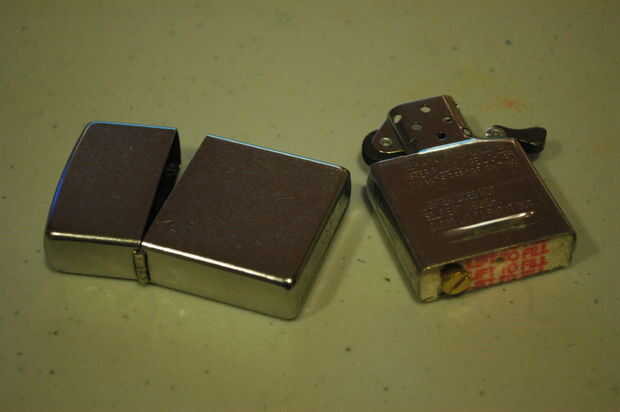 Saque el inserto de Zippo desde el encendedor de mantenerla limpia y cinta el caso cerrado para evitar que se abran.