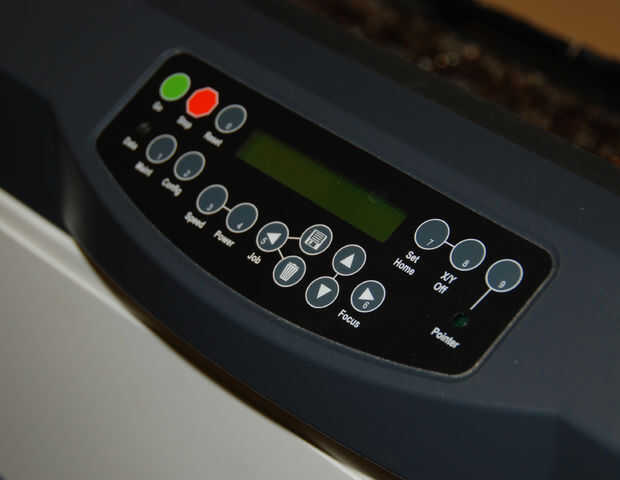 Usar el panel de control en la parte delantera del láser para hacer el enfoque estableciendo la distancia que el láser está por encima de su material. Presione el botón de "enfoque" en el panel frontal para habilitar el arriba y abajo botones (arriba y abajo flechas junto al botón de enfoque). Después use la flecha hacia arriba y hacia abajo las teclas para ajustar el panel de explotación del trabajo arriba o abajo, para que el material apenas toque la herramienta de enfoque del lente. A continuación, retire la lente de enfoque herramienta ya sea dejar de lado o puede montarlo sobre el ensamblaje del cabezal del láser para el almacenamiento. Por último, que golpear el botón de reset en el panel frontal, que elimina el láser de modo de enfoque, se mueve el cabezal láser a su estándar a partir de X Y posición listo para comenzar.