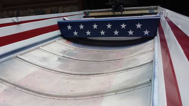 Todo lo eliminar del barco y dejar de lado. Vacío el bote entero hasta que quede limpia. Limpie todo otra vez y usar vinagre para limpiar el aluminio desnudo. Una vez todo esté seco. Aplique el compuesto galvanizado frío a todas las áreas que han expuesto o aluminio pelado. Aplique una segunda capa o múltiples capas como recomendados por las especificaciones de la pintura. Después de esta cartilla se ha secado, la cinta todas las zonas que no se pintarán. Quería un barco patriótico, así que pinté rayas las paredes laterales y estrellas theseats. En primer lugar, la cinta del borde superior y todas las demás áreas que no se pintarán. Entonces, usando pintura en aerosol, cubra todo en las paredes laterales del casco y las partes verticales de los asientos de aluminio blancos por una capa de base. Aplique capas según lo recomendado por el fabricante de la pintura de aerosol. Asegúrese de aplicar capas incluso ligeras para evitar rayas y funciona. Después de permitir que la pintura completamente seca, aplique la cinta sobre las áreas que quedarán en blanco. Aplicar otra capa de pintura blanca sobre la cinta para ayudar a crear líneas de cinta fuerte. Una vez todo seco, aplicar el siguiente color de la pintura. A continuación, rocíe la pintura roja sobre las áreas blancas que no son grabadas para crear las rayas rojas. Aplique una segunda capa o múltiples capas como recomendados por las especificaciones de la pintura. Cuando está seco, cinta fuera de las áreas que han sido pintadas con las rayas. A continuación, cortar papelitos adhesivos completo a la forma de los Estados Unidos estrellas de la bandera. Aplicarlas a la porción vertical de los asientos con espaciamiento uniforme. Este debe ser blanco de antes. Un par de capas de pintura de aerosol sobre las notas adhesivas y asegúrese de que se presionen firmemente. Cuando la pintura esté seca, pintura en aerosol azul sobre las estrellas en los asientos. Esto creará un fondo azul con estrellas blancas. Una vez que se ha hecho todas las pinturas, retire todas las cintas. Retocar las áreas necesitadas.