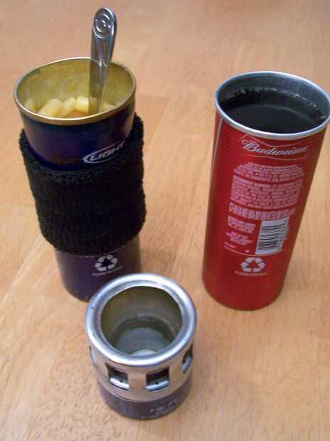 () también reconoce la técnica demostrada aquí, como un medio para crear utensilios de peso ligero para acompañar un estufa del alcohol.