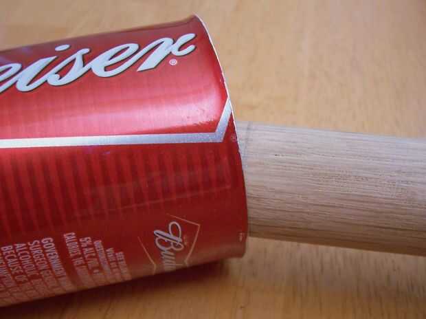 Inicio de flare el borde de la botella. Un 1" diámetro pasador de madera funciona bien.
