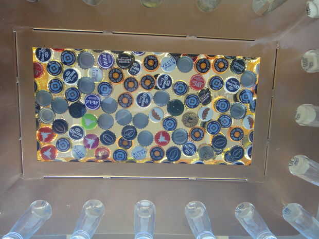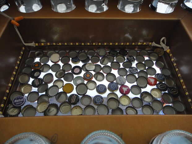 Luego coloque las botellas en la cut outs, seguidos ahorrados tapas si los tienes. Si no tiene botellas o tapas sin embargo, a través de un partido y empezar a construir hacia arriba!