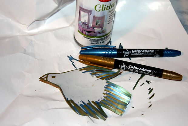 Uso de todo lo que pegajoso brillo que has conseguido escondida en el gabinete... (Asegúrese de que si estás pegando para utilizar el tipo de pegamento que se adhiere al metal y también es resistente a la intemperie). Otra opción es usar spray de brillo (tan rápido y fácil y no deja brillo en todo su alfombra para gatos con.