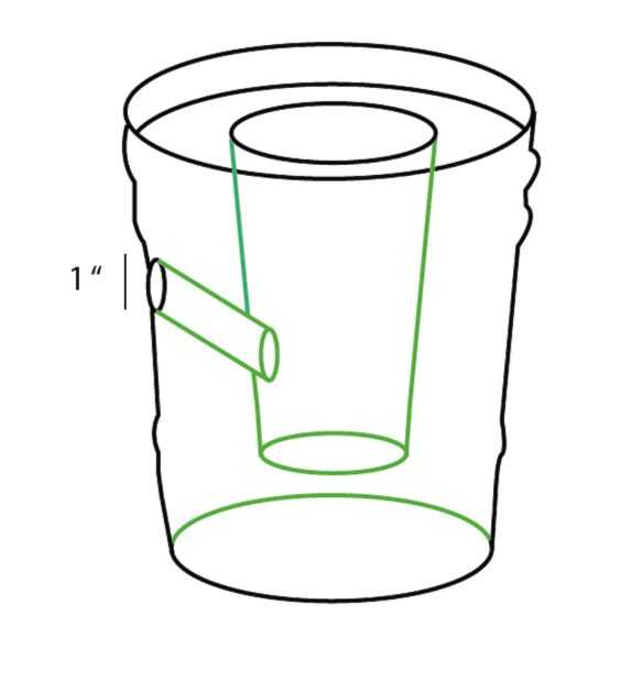4. Antes de que la mezcla haya endurecido completamente, utilice una sierra de hoyo de 1" para perforar un tubo de aire. En un ángulo de 30 grados agujero en el lado del horno a través de la cámara por lo que la apertura es alrededor 2" desde la base.