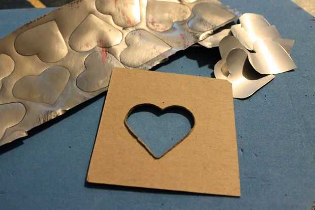 Con un bolígrafo, traza la forma del corazón en las hojas de aluminio. Puede ser útil poner una almohadilla de espuma bajo el aluminio mientras haces el trazo.