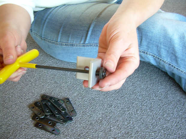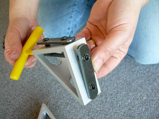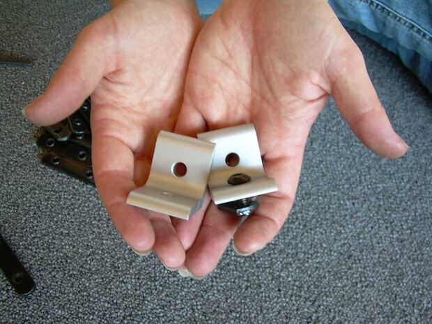 Libremente ponemos los tornillos deslizantes en los 4 soportes en ángulo derecho y el triángulo 8 - abrazaderas de 4 tornillos. Fácil de hacer esto antes de deslizar en la ranura de aluminio T 80/20.