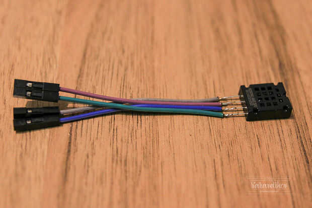 Usted tendrá que soldar unos cables a los pines de AM2320 porque son muy delgadas para utilizar conectores de DuPont directamente. Sin embargo todavía estoy utilizando cables de DuPont, pero cortado por la mitad. Sólo tome su soldadura y hacerlo.