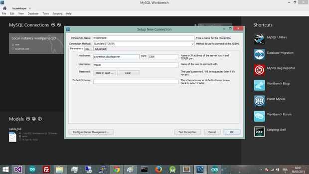 continuación, introduzca sus credenciales (que se encuentra en la cadena de conexión en azul).