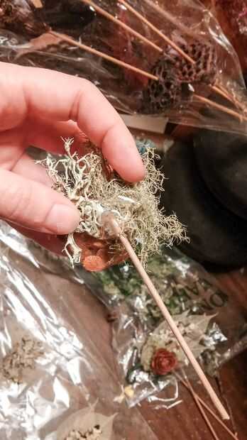 • Adhesivo uso para sujetar el musgo a su esqueleto de hojas en un arreglo que te gusta.