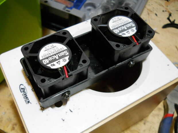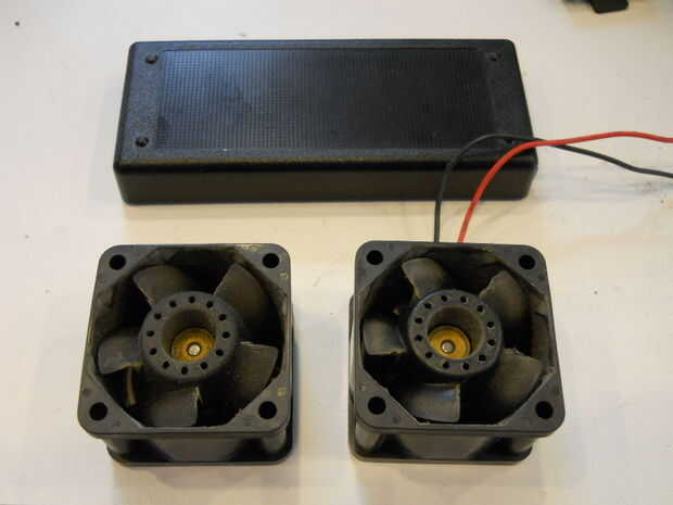 Cortar los cables de los ventiladores. Conecte los ventiladores a la caja del ordenador portátil.