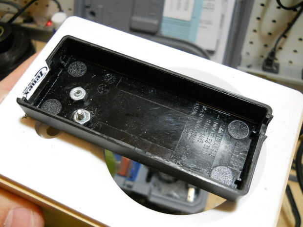 Tomar la mitad de la caja del adaptador de alimentación portátil. Conéctelo a la parte inferior de la caja.
