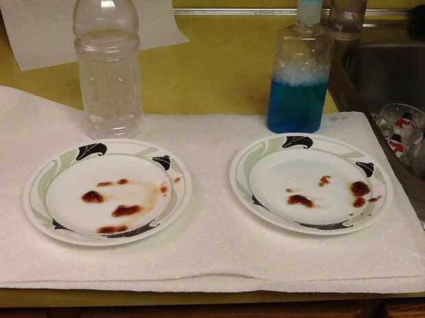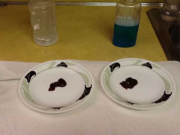 Resultados: El alba hizo el olor de la placa mejor, pero el jabón casero había hecho un mejor trabajo en la limpieza. Entonces cuando aclarado para el segundo experimento, parecía el plato con el jabón hecho en casa parecía sólo deslizar, donde como el amanecer jabón necesita un enjuague suave.