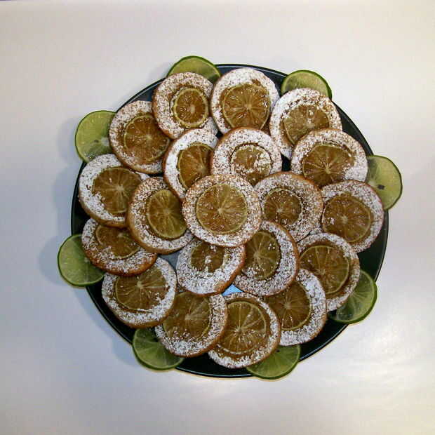 Esta es una tarta deliciosa y picante que me gustó mucho hacer! Puede utilizar 4-5 limones regulares pero usaba limes claves (punto 22). En primer lugar, hacer una costra de galleta, luego el limón relleno y finalmente, rematar con alguna crema batid