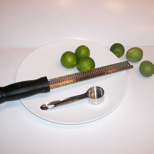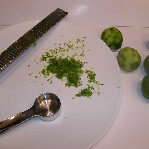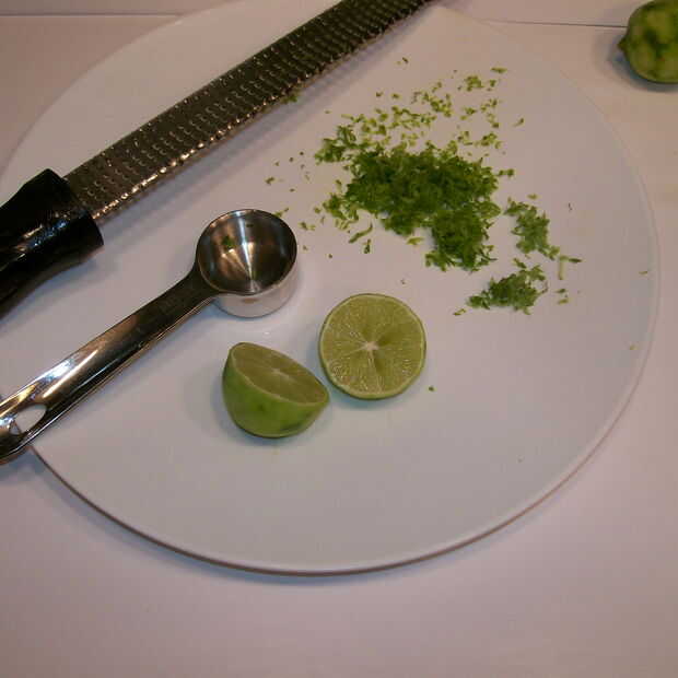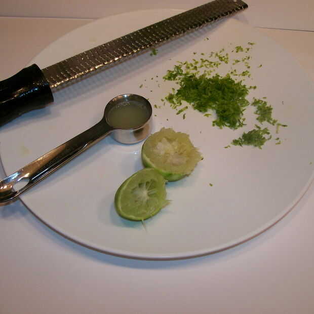 Con un entusiasmo de microplane suficiente clave cales para obtener 1 cucharada. Cortar los limones mismo para obtener 1 cucharada de jugo.
