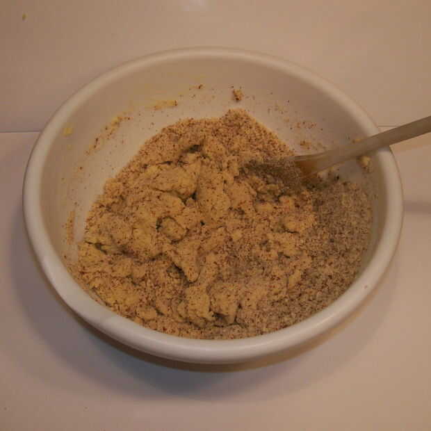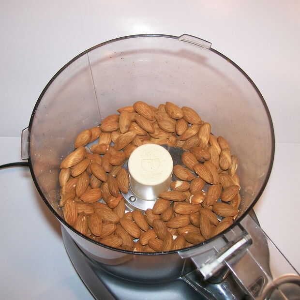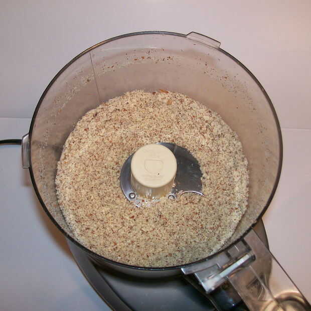 Finamente moler almendras en un procesador de alimentos hasta que se asemejan a arena gruesa.