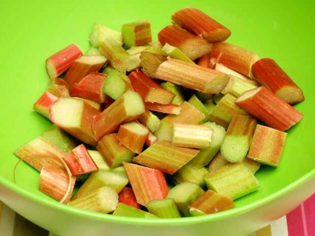 460 gr de fresca, limpiar los tallos de ruibarbo, cortados en trozos de 2-3 cm