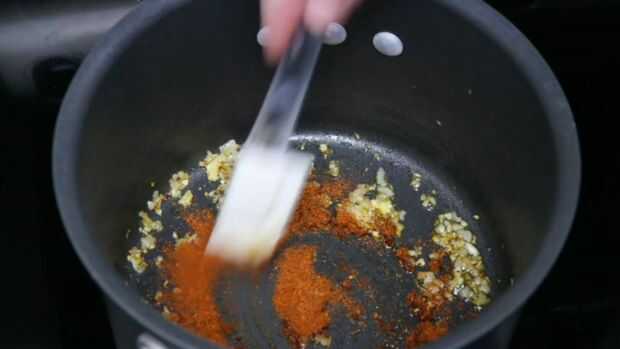 Marrón de las chalotas en el aceite de oliva. Añadir el ajo y cocine por 1 minuto. Añadir Chile en polvo y cocer por un minuto adicional.
