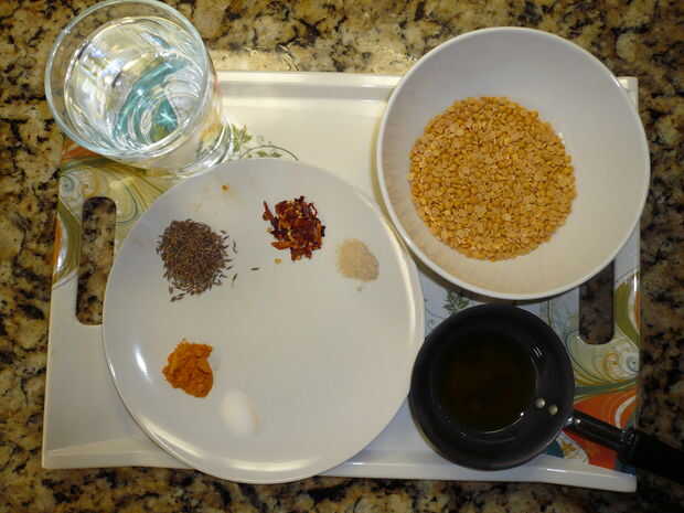 Vierta el agua, lavada las lentejas, cúrcuma y sal en olla a presión.