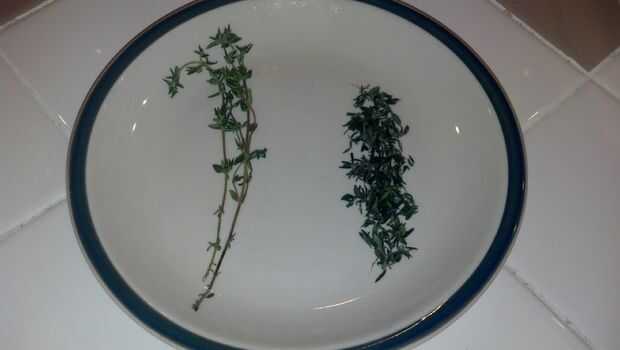 4. La hoja del tomillo orgánico. Lo que funciona para mí es pinzar el tallo y deslizar las hojas apagado