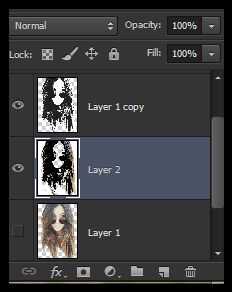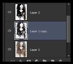 - En la copia de la capa 1 se aplican después de los ajustes de imagen > ajuste > Threashold (me puse a alrededor de 150)