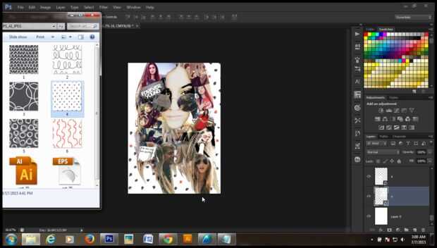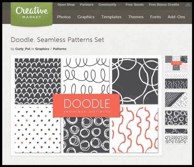 Descargar estos patrones de Mercado creativo https://creativemarket.com/Curly_Pat/218390-Doodle.-Seamless-Patterns-Set y añadir por encima de la capa de fondo. [imagen]