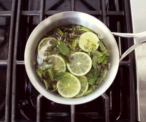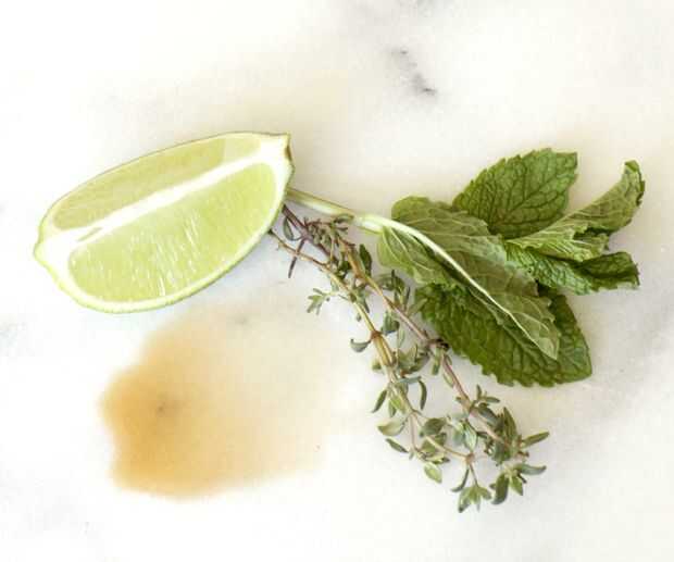 - Mezcle en algunos tallos de menta fresca y tomillo.