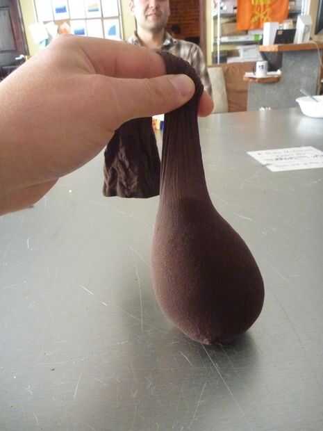 Use su mano para empujar los terrenos hasta la parte inferior de la media y formar una bola.