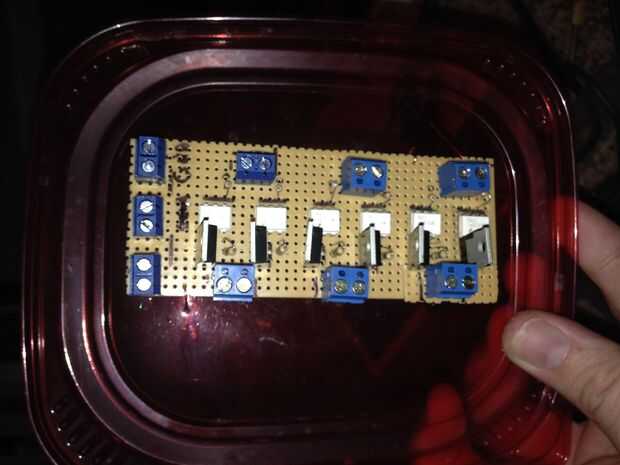 Esta parte del proyecto fue tomada de este excelente Arduino por luces de Navidad Instructable. Esquemas e instrucciones detalladas se pueden encontrar allí. He usado triac carnoso simplemente porque tenía en mi cubo de piezas. Sin duda puede utilizar triacs más pequeños, menos costosos si están disponibles para usted. Asimismo con optoacopladores. Usé el optoacoplador MOC3041 porque les tenía. Son carnosos para optoacopladores, y si lo desea puede utilizar menos caros. Usted está conduciendo a las puertas de los triacs con ellos.