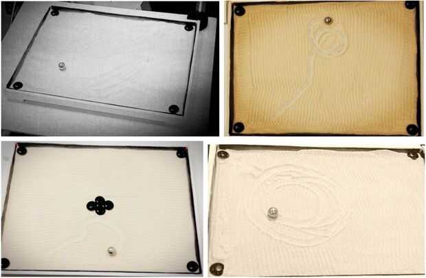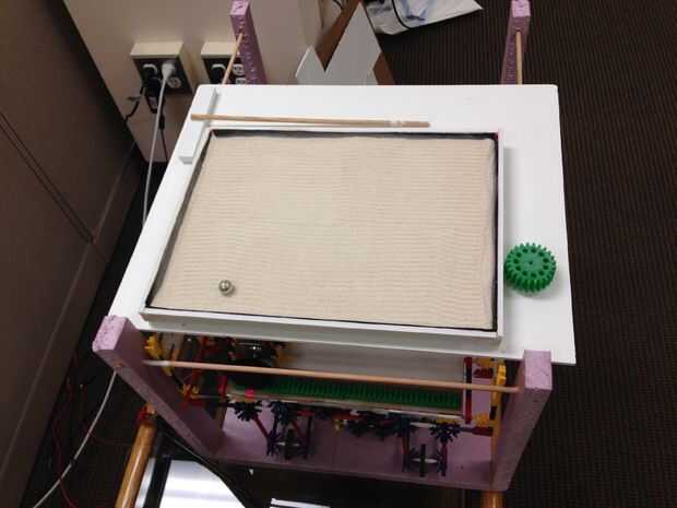 Kinects y proyecto de motores de los Jardines HackerSpace Zen UMD son una forma pacífica para visualizar espacio y tranquilidad. Nuestro proyecto pretende conectar el jardín zen a la sala en la que se sienta; impregnando el jardín con las características de los ocupantes de la habitación. De esta manera, el jardín zen se convierte en no sólo una visualización de un espacio ideal y la tranquilidad sino de la actual tranquilidad de sus alrededores. Esto se dice, aquí es una funcional mesa XY esquemática y un frío aparato de dibujo en la parte superior!