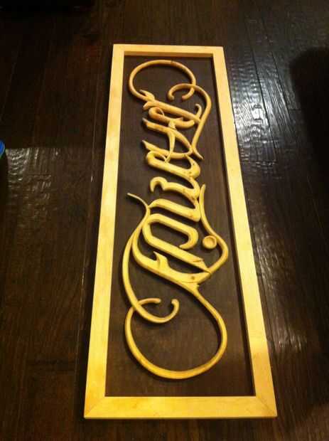 yo fui el encargado de construir un signo para un amigo. Me dieron el texto, (Fuerte independiente mujer necesita ningún hombre) y un límite de precio de 100$. Recientemente había comprado un Retrato silueta y quería usar para crear el texto. También