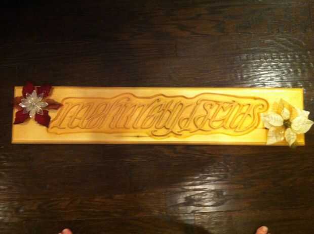 yo fui el encargado de construir un signo para un amigo. Me dieron el texto, (Fuerte independiente mujer necesita ningún hombre) y un límite de precio de 100$. Recientemente había comprado un Retrato silueta y quería usar para crear el texto. También