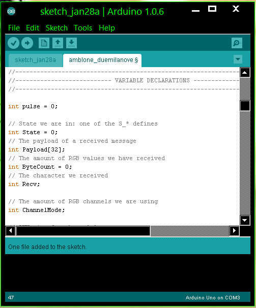 pasado... Abra el archivo con el entorno de Arduino y subir de golpe... Asegúrese de que cargue correctamente.