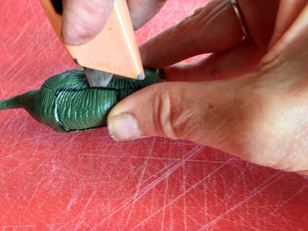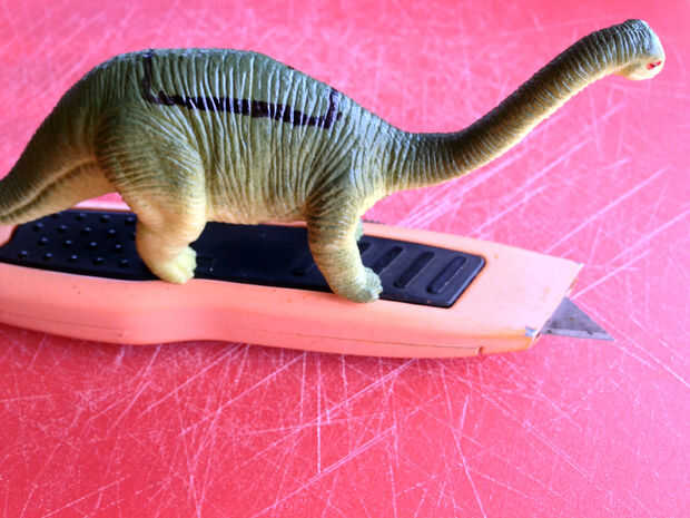 Presione hacia abajo y rebanada a lo largo de dino.