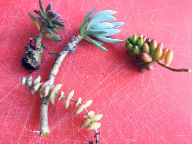Buscar en el jardín para algunos pequeños brotes jóvenes de las plantas suculentas y corte.