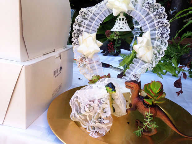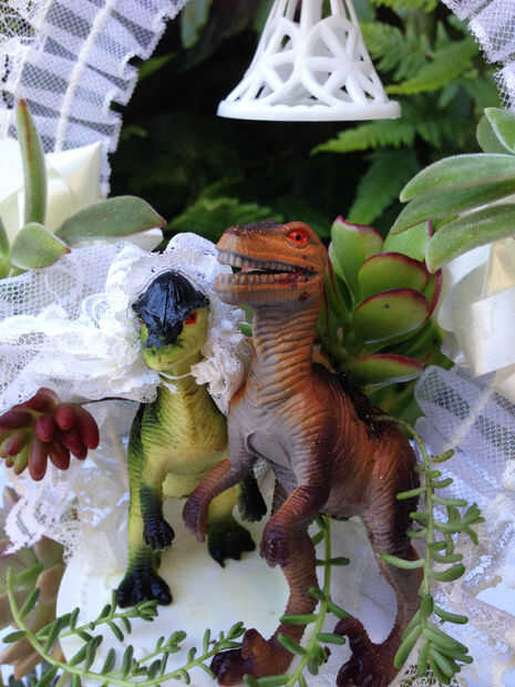 Lo pero que sea tuyo! Utilizar tus dinosaurios favoritos para representar a la novia y el novio.
