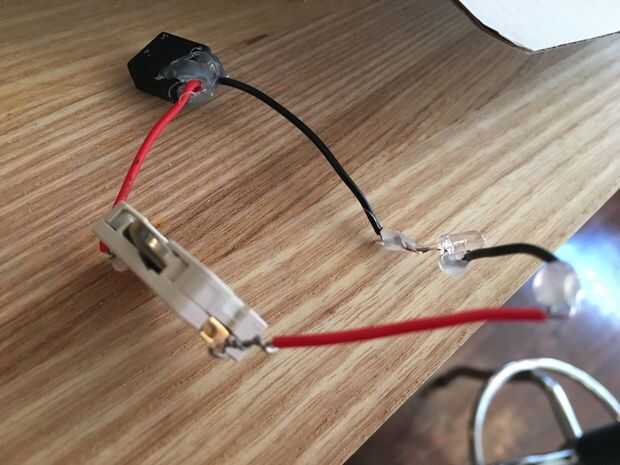 Construir un circuito independiente con un interruptor de batería y LED.