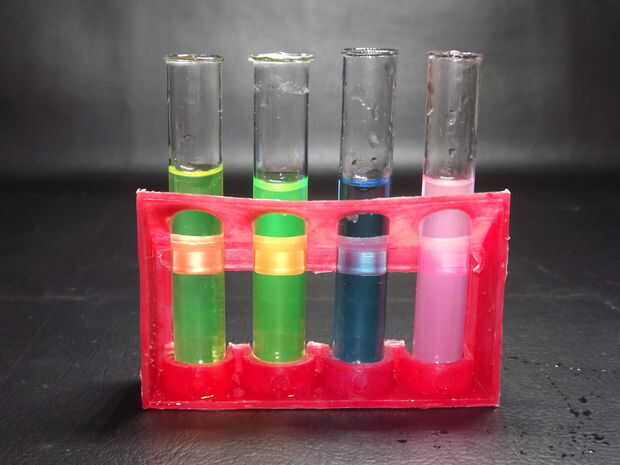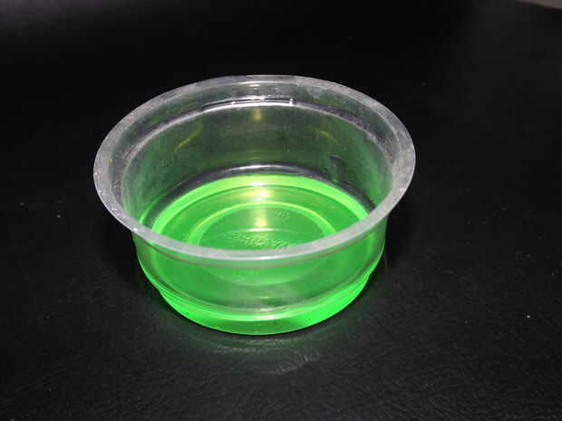 Marcador fue utilizado para proporcionar el color fluorescente al líquido. Marcador fue sumergido agua destilada. Desde entonces, profundidad de cavidad es de sólo 3mm, se recomienda el color más oscuro. Tan sumergir marcador más. He probado esta solución en los rayos uv. El líquido así obtenido brilla en los rayos uv.