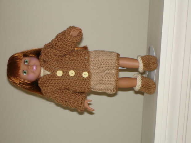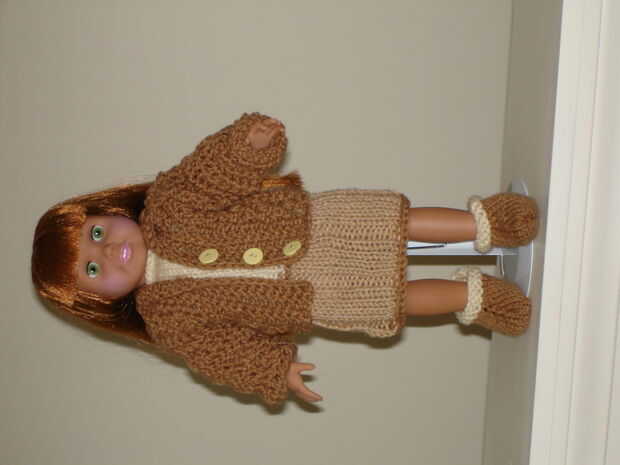 mi nieta recibió una muñeca American Girl para la Navidad y no quería - necesarios - ropa para su "Allison". Este juego fue hecho con hilo de la marca del León (opción de Vanna). No cambiaría nada - el hilado era fácil de trabajar y los resultad