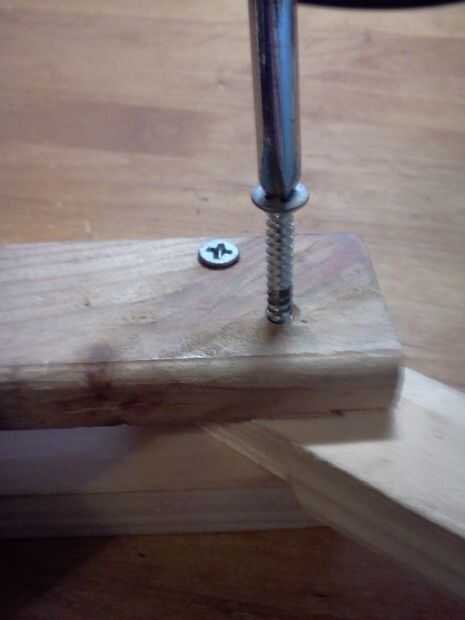 Obtener el stock y los paneles laterales y los dos tornillos. Colocar un panel de lado, colocar la acción en el panel, poner el último panel en la parte superior y taladrar dos orificios para los tornillos. Después de eso, enroscar los tornillos.