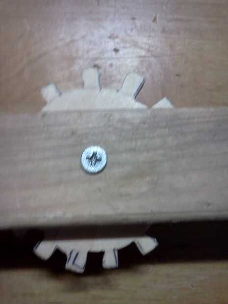Deslice en el frente de la pistola y un agujero para él. ASEGÚRESE DE QUE SU ALINEADO!!!!!! Lado del engranaje tword las existencias. Asegúrese de que la parte larga tiene espacio suficiente para girar alrededor de todo el camino. Luego taladre el agujero y poner el tornillo en.