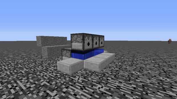 A continuación colocar dispensadores de 6 en una formación como esta. Añadir 5 losas abajo para bloquear el agua que fluye. Luego coloque el agua en los depósitos principales. Después de esta carga todos los depósitos hasta el borde con tnt.