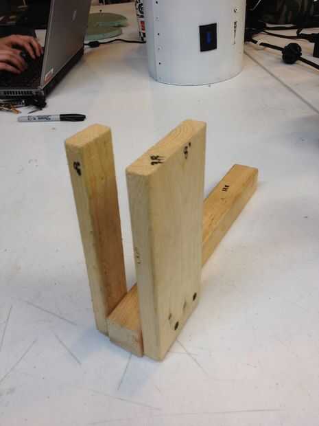 Cortar otros dos trozos de madera a 8" largo para el montaje del servo. Éstos se unirá a la columna vertebral y apoyará el servo (ver foto de la parte completa).