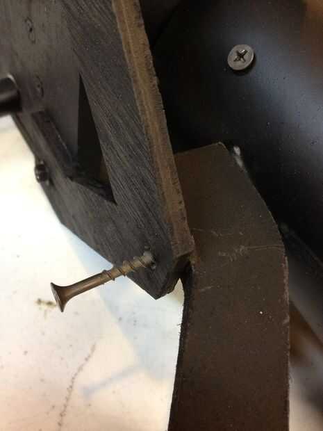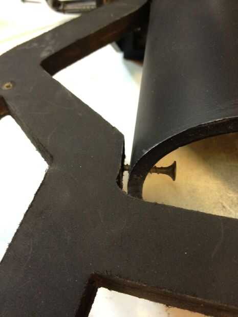 Montar el asa trasero en su lugar, debe ser muy apretado debajo de la V. Si es demasiado apretado sólo arena abajo al final hasta que encaje bien. Taladre un orificio guía desde la parte superior de la V a través del tubo principal. Retire el mango trasero y hacer el agujero más grande, que esta parte es la más probable dividir.